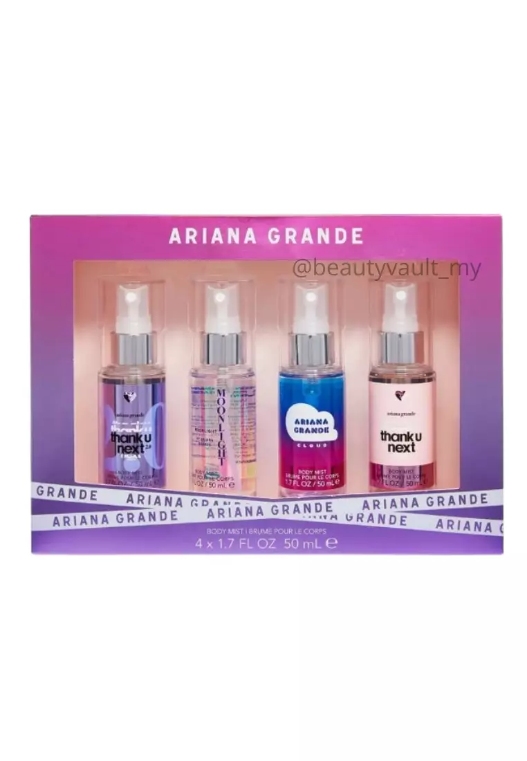 Set Body Mist Ariana Grande . Web ariana grande’s fragrance cloud is the uplifting scent that imbues a thoughtful, artistic expression of positivity and happiness from ariana to her fans. Web ariana grande ari body mist. Home / beauty / fragrances /. Web buy ariana grande body mist 50ml 4 piece set online at chemist warehouse®. Web ariana grande’s ari body spray features a super feminine, floral and fruity fragrance, with top notes of raspberry, pear and grapefruit on woody base notes of marshmallow and.